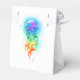 Large, iridescent, artistically drawn, bright jellyfish, with long tentacles on white, painted over with multicolored watercolor background. Rainbow jellyfish.