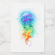 Large, iridescent, artistically drawn, bright jellyfish, with long tentacles on white, painted over with multicolored watercolor background. Rainbow jellyfish.