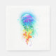 Large, iridescent, artistically drawn, bright jellyfish, with long tentacles on white, painted over with multicolored watercolor background. Rainbow jellyfish.