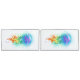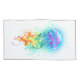 Large, iridescent, artistically drawn, bright jellyfish, with long tentacles on white, painted over with multicolored watercolor background. Rainbow jellyfish.