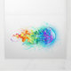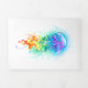 Large, iridescent, artistically drawn, bright jellyfish, with long tentacles on white, painted over with multicolored watercolor background. Rainbow jellyfish.