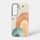 A playful abstract rainbow with soft curves and warm tones radiates optimism and joyful energy.