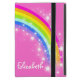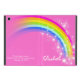 Cute pretty bright and colourful rainbow ipad mini folio or other iPad case of your choice. Original graphic patterned book style type case with a pink background. Customise with the long name of your choice. Example reads Elizabeth. Plus if found address details can be placed on the reverse just in case your child is absent minded on occasions, if you don't want this simply delete the text. This original case is designed by Sarah Trett.