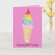 Bonne carte d'anniversaire. Aquarelle dessinée à la main cône crème glacée aux couleurs vives