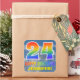 This exciting, fun, and eye-catching birthday-themed sticker design features a blue sky with clouds pattern background, a large number "24" and "HAPPY BIRTHDAY," both having a multicolored rainbow spectrum inspired gradient pattern, and a customizable name. Colourful and fun stickers like this might be used when wrapping presents being given in celebration of somebody’s 24th birthday. [~Z0000374]