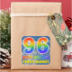 This fun, eye-catching, and vibrant birthday-themed sticker design features a cloudy blue sky pattern background, a large number "96" and "HAPPY BIRTHDAY," both having a multicolored rainbow spectrum inspired gradient pattern, and a customizable name. Colourful and happy stickers like this might be given as a gift to somebody who is celebrating their 96th birthday. [~Z0000374]