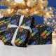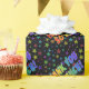 This fun, upbeat thank you wrapping paper design features the message "THANK YOU SO MUCH!", with the letters having a rainbow spectrum gradient like pattern, on a dark coloured background featuring a colourful stars pattern. This might be used when wrapping a thank-you gift being given to somebody who has done something special.