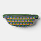 Stylish fanny pack with green trim for the on-the-go person and features the photo image of a colourful, blue-headed Rainbow Lorikeet parrot head printed in a tiled pattern. Back of fanny pack is black.