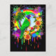 Colourful and Exotic Little Rainbow Lorikeet Parrot on Tropical Flowers, Palm Trees, Rainbow Colours Circle, and Colourful Paint Stains and Drops Background.