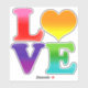 A simple but bold, Love text design accented with a heart and gradient rainbow colours. Show some love anytime! Shown here on a customizable die cut sticker. Available in several sizes and two finishes. Great for sticking on laptops, water bottles, your car, scrapbooks, and more! They're water resistant and reusable.