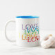 The design on this RAINBOW LOVE white ceramic mug is the word "LOVE", in rainbow colours, repeated six times, overlapped in a casually pleasing way. * Other mugs, and matching products are in the COLORS category of my shop. ** If you'd like to transfer this design to another product type, shape, or size, please check my shop first to see if I have one already done, because I'll have fiddled with it to make the design fit just right and it will save you the bother. Sometimes designs transfer ok, sometimes they don't. Just fyi.