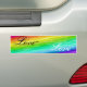 This bumper sticker features the word "Love" in both black and white over a diagonal rainbow that was made by me using iSketch.net.