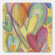 A single large heart is in the center surrounded by a rainbow of colorful hearts. The art is a tribute to the healing power of giving and receiving inspired love in our lives. The art was created using watercolor pencils and paint on paper. Inspirational artwork by Laurel Latto for DonnaBellas Angels.