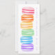 This charming macaron birthday party invitation features the image of an asymmetric stack of 6 topsy turvy, rainbow-coloured macarons on the front with the text "Please celebrate with us" oriented vertically to the right of the macaron stack - personalize her party details on the back - by katz_d_zynes
