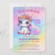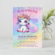 Celebrate in style with this unicorn-themed 5th birthday invitation! Featuring a colourful, glittery design and all the important party details, it's perfect for a magical celebration. On the back, guests will find a fun surprise - a cute unicorn colouring page to keep little ones busy and excited for the party!