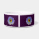 This awesome pet bowl features a photograph of a marigold flower that has been manipulated to create a beautiful flower with a mixture of colours from the rainbow. The flower is on a dramatic dark purple background.
