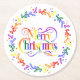 LGBT+ Pride flag inspired rainbow Merry Christmas wreath paper coasters.