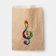 Polygonal, rainbow, bright musical key on white background. Polygon tattoo. Treble clef