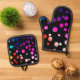 Rainbow Neon Polka Dots Oven Mitt & Pot Holder Set