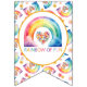 Bring the party to life with this colourful birthday bunting banner featuring a watercolor rainbow, floral hearts, and bold rainbow lettering. The repeating pastel pattern ties beautifully with the full Rainbow of Fun collection, making it a perfect backdrop for dessert tables, photo ops, or entryways. Pre-strung and ready to hang—just personalize and celebrate!