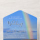 Invite family and friends to your wedding with this beautiful rainbow over calm blue water. A romantic symbolism of Love & Happiness displayed with a colourful rainbow over the sea. Positive symbolic meaning of rainbows are acceptance, beginnings, happiness, harmony, hope, inspiration, integration, love, luck, joy, spirituality and transformation. A perfect invitation package set for the beach wedding, Hawaiian wedding, tropical island destination wedding and more.