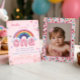 This pastel rainbow invitation was designed to capture a once-in-a-lifetime moment — a baby’s very first birthday. The soft colors and playful “one” were created to pair perfectly with a sweet photo on the back, turning a simple invite into a keepsake guests will treasure.