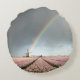 Rainbow over hyacinths and a windmill in Holland Round Pillow