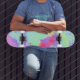 Colorful skateboard featuring a messy spray paint splatter effect, this vibrant green board is perfect for a teen or tween with a bold personality, for both son and daughter's of all ages, Check out my shop for more colors designs and products.