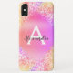 Purple Pink Rainbow Pastel Bling Ombre Sparkle and Faux Metallic Foil Glitter Girly Modern Monogram First Name and Initial Smart Phone Case. Please contact the designer for matching items