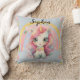 Rainbow Pastel Blue Kawaii Unicorn With Name Throw Pillow