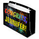 Rainbow Pattern "CONGRATS", Custom Name, Fireworks Large Gift Bag