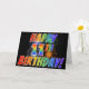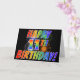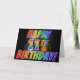 The front of this vibrant, fun and eye-catching greeting card design features a colourful pattern inspired by celebratory fireworks, along with the message "HAPPY 11TH BIRTHDAY!" featuring a multicolored rainbow like gradient pattern, on a black coloured background. The inside features a customized greeting message, or could perhaps be cleared and left blank if it is desired to write a message by hand instead. A greeting card like this might be a happy, fun way to celebrate somebody’s 11th birthday. [~Z0000355]