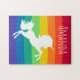 Rainbow Pattern White Unicorn Personalized Custom Jigsaw Puzzle