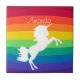 Rainbow Pattern White Unicorn Personalized Custom Tile