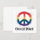 A vibrant peace sign symbol rendered in rainbow colors with a paint splash and drip effect, set against a white background. Below it, the phrase "CHOOSE PEACE" is written in a bold, brushstroke font, conveying a message of unity and harmony.