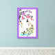 Rainbow peacock & cherry blossoms purple border canvas print