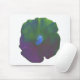 This grungy mousepad features a photograph of a petunia flower that has been manipulated to make the centre of the flower blue. The rest of the flower has shades of purple, green and blue, giving it the appearance of a grungy rainbow flower.