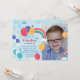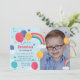 Un arc-en-ciel, des ballons heureux, des étoiles et des confettis honorent cette invitation festive d'anniversaire photo.<a href="https://www.freepik.com/free-photos-vectors/background">vecteur Arrière - plan créé par pikisuperstar - www.freepik.com</a>). (Pix). <br/>() La carte est facile à customiser avec votre libellé, police, couleur de police, options de forme de papier et le choix de six types de papier.<br/>() Pas exactement ce que vous cherchez? Tous nos produits peuvent être conçus sur mesure pour répondre à vos besoins sans frais supplémentaires.<br/>() Il suffit de nous contacter à askcottonlamb@gmail.com .<br/>() Coordination des produits disponibles : Il suffit de nous demander !"