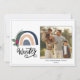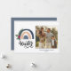 Such a cute holiday photo card with blue and tan boho rainbow with a sprig of pine bough and holly berries. So unique. Personalize with your choice of photo.
