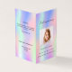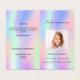 An elegant 4-page program. A girly rainbow, holographic background in pink, purple, blue and mint green. Personalize and add a photo, name, dates and your text.