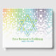 This non-traditional gamer inspired video gaming design features a Jewish Star of David. There are also brightly coloured rainbow raining or cascading digital style computer pixels along the top of the invitation. The fonts are techno computer style.