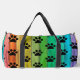 This playful Gear bag features an eye-catching design of black paw prints layered over a vibrant rainbow spectrum, resembling colourful wooden planks. It's a fun Kit bag and an ideal Weekender for animal lovers' adventures.
