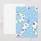 Illustrated design of a white snake with rainbow coloured polka dots against a spotted blue backdrop