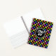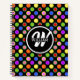 Choose your own paper notebook, journal, sketchpad for the home, office or school. Watermelon, strawberry, blue raspberry, pink grapefruit, orange, lemon yellow, lime green, grape jelly fruit candy colourful polka dots on black. Personalize with initial and name.