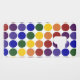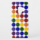 Rainbow coloured polka dots are arranged in rows on a white background. The offset rows form diagonals of each colour: violet, indigo, blue, green, yellow, orange, and red.