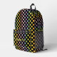 Rainbow polka dots. Seamless pattern. Custom background colour. Custom text.