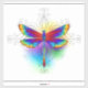 Bright, rainbow, polygonal dragonfly on white background, painted with watercolor.