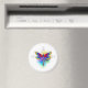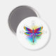 Bright, rainbow, polygonal dragonfly on white background, painted with watercolor.