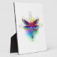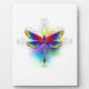 Bright, rainbow, polygonal dragonfly on white background, painted with watercolor.