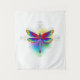 Bright, rainbow, polygonal dragonfly on white background, painted with watercolor.